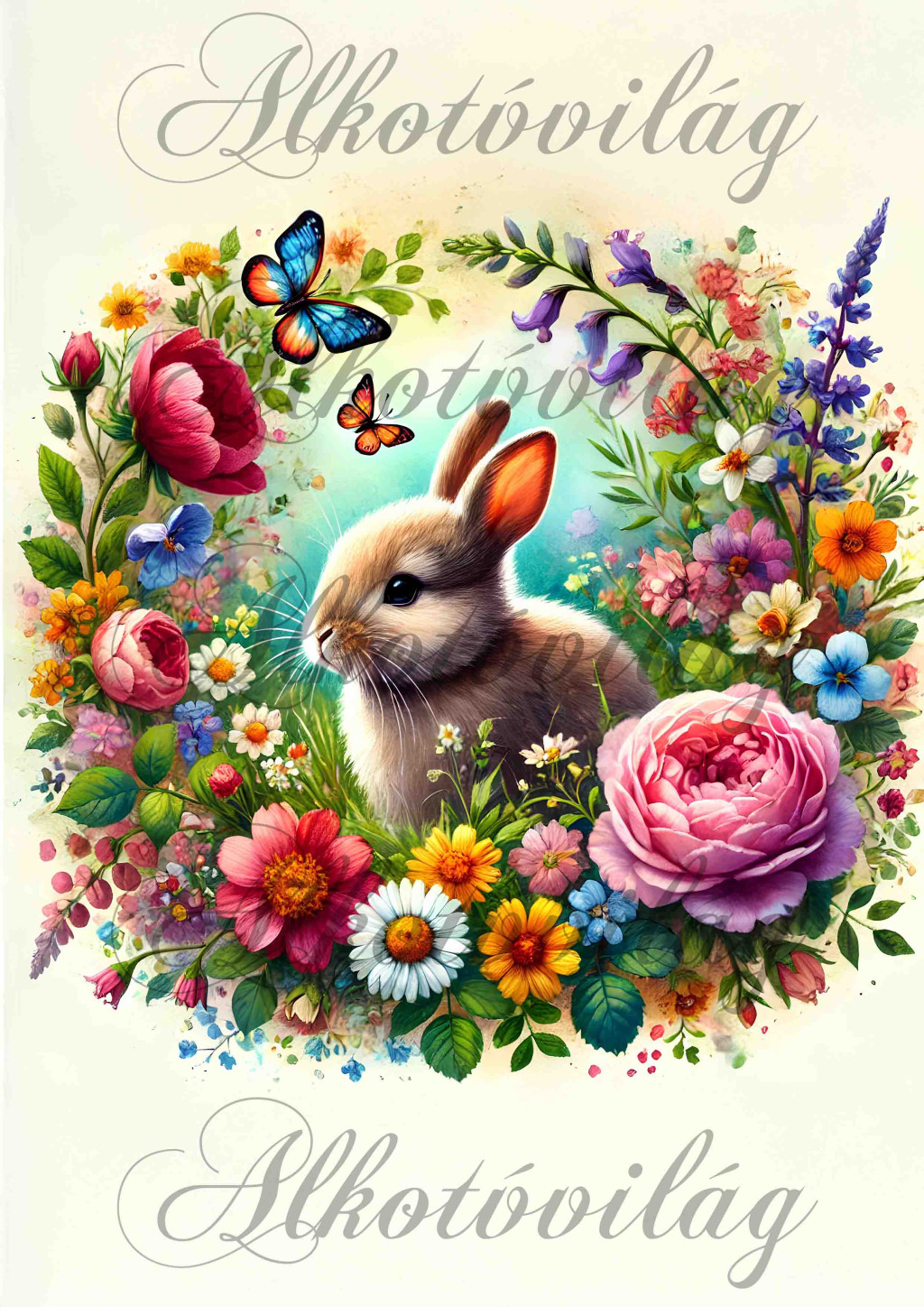 Nyuszi virágokkal 3- PÁRNABLOKK, VÁSZONTÁSKA BLOKK, PATCHWORK BLOKK, UZSONNÁSTASAK BLOKK