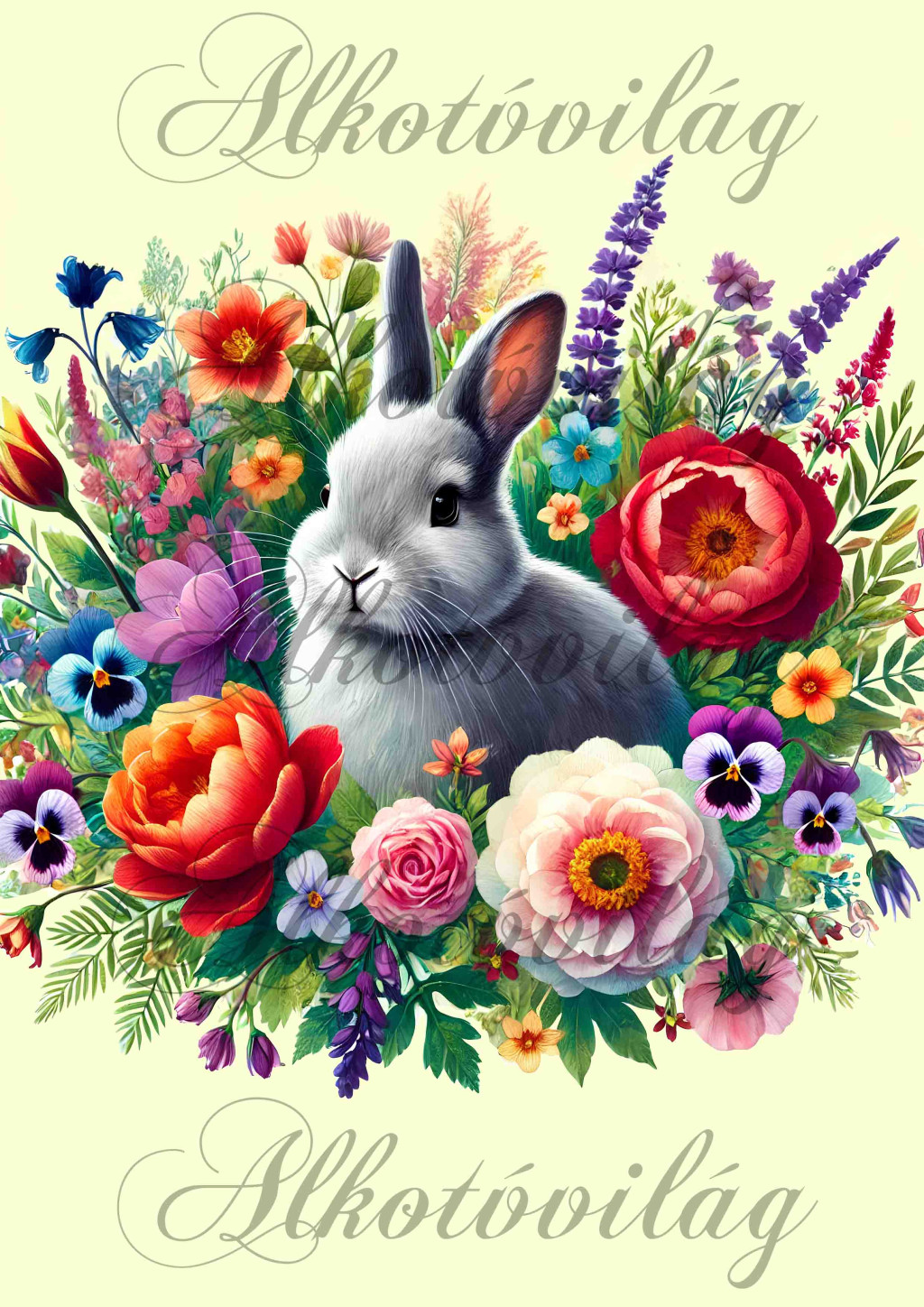 Nyuszi virágokkal - PÁRNABLOKK, VÁSZONTÁSKA BLOKK, PATCHWORK BLOKK, UZSONNÁSTASAK BLOKK