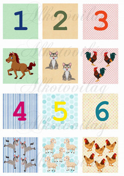 Oktató kártyák számokkal, állatokkal, versikével- ELSŐ OLDAL - Több mint 20 alapanyagon elérhető.