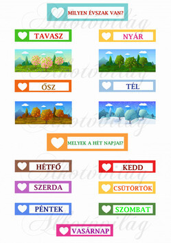 Oktatókártyák évszakok és napok - Több mint 20 alapanyagon elérhető.