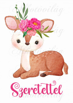 Őzike rózsákkal SZERETETTEL felirattal - Több mint 20 alapanyagon elérhető.