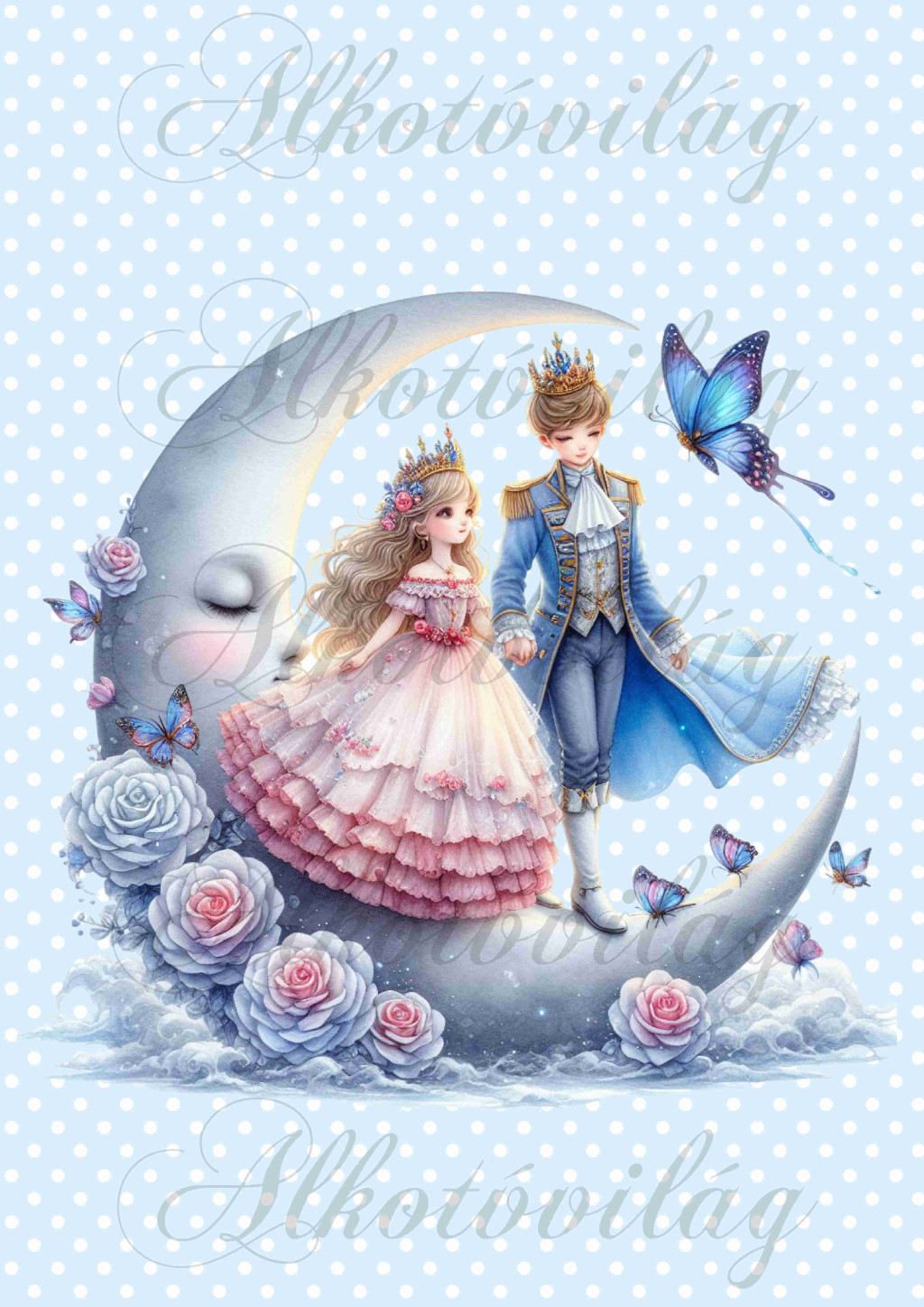 Párnablokk - vászontáska blokk - Herceg és hercegnő pillangók között pöttyös háttérrel