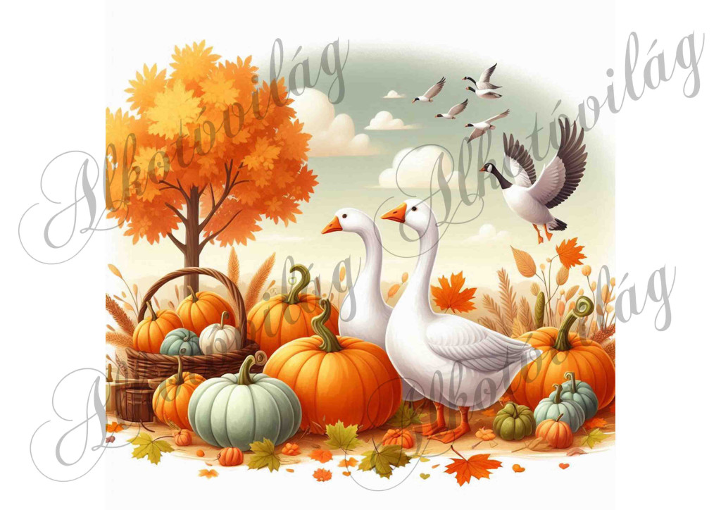 Párnablokk - vászontáska blokk - Libás őszi kép tökökkel 2