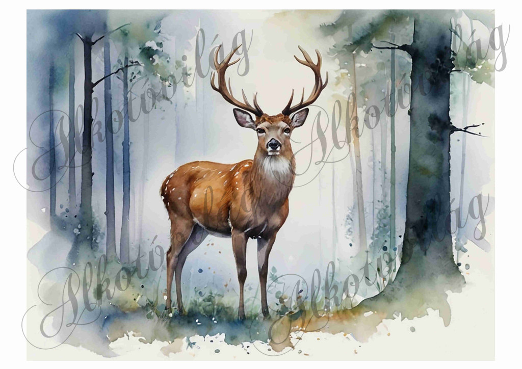 Párnablokk - vászontáska blokk - Szarvas erdőszélen akvarell stílusban - 20 x 26 cm - Több mint 20 alapanyagon elérhető.