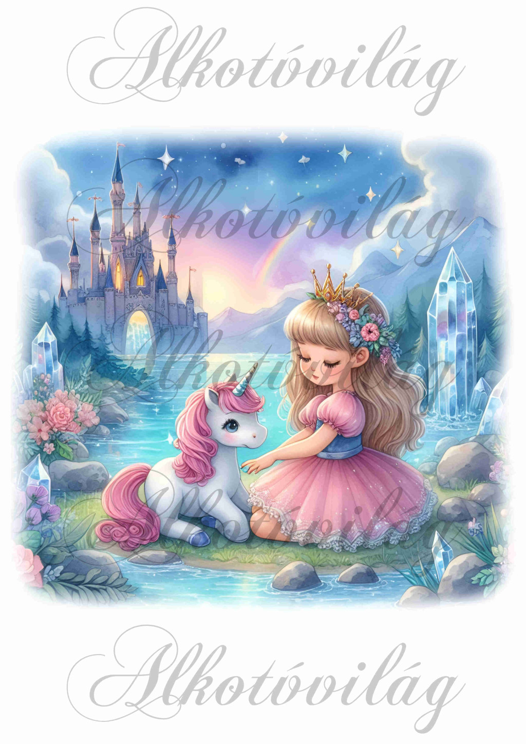 Párnablokk - vászontáska blokk - hercegnő kicsi unikornissal a kastélynál