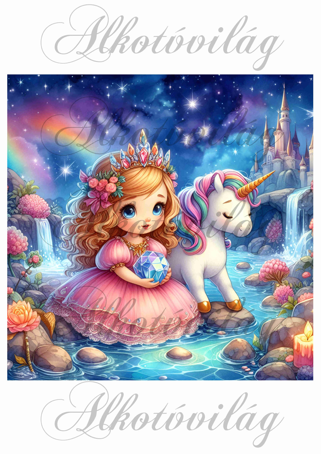 Párnablokk - vászontáska blokk - hercegnő unikornissal a kastélynál