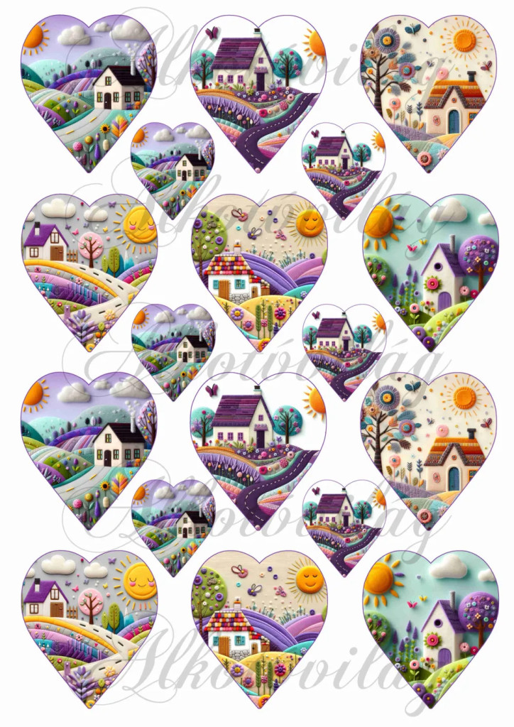 Patchwork jellegű szívek 6,5 x5,5 cm és 4 x 3,5 cm - VASALHATÓ FÓLIA