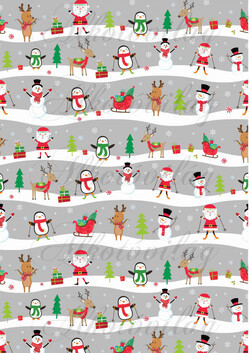 Pingvin, szarvas, hóember, mikulás dombok között hóesésben - Több mint 20 alapanyagon elérhető.
