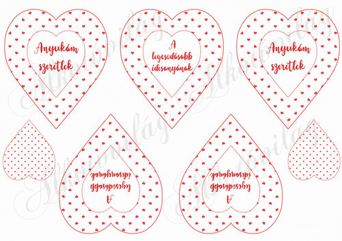 Piros apró szív mintás szívek Anyukám szeretlek felirattal - Több mint 20 alapanyagon elérhető.