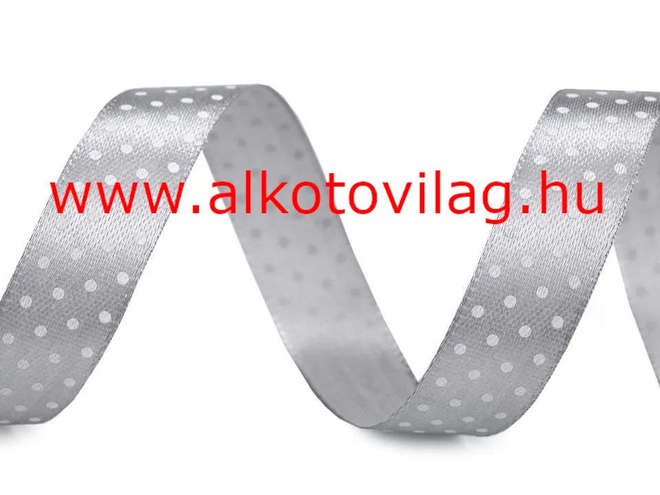 Pöttyös szaténszalag - 15 mm széles- SZÜRKE