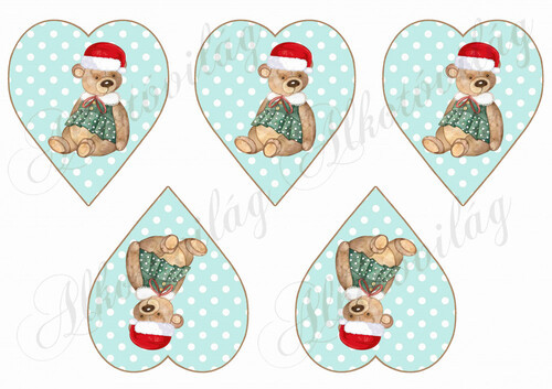 Pöttyös szívek cuki mikulássapkás macival - Több mint 20 alapanyagon elérhető.