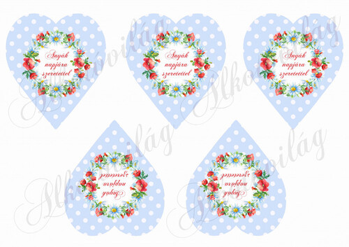 Pöttyös szívek pipacsos virágkoszorúval- Anyák napjára szeretettel felirattal - Több mint 20 alapanyagon elérhető.