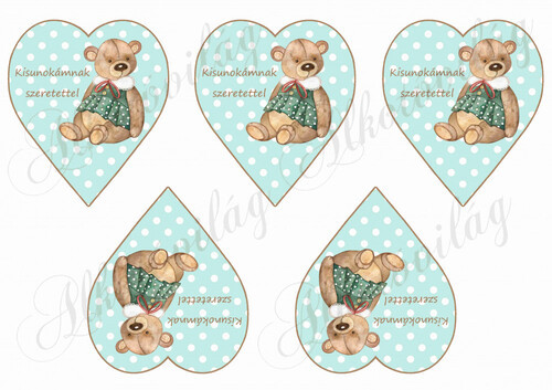 Pöttyös zöld szívek barna kerettel, macival - KISUNOKÁMNAK SZERETETTEL felirattal - Több mint 20 alapanyagon elérhető.