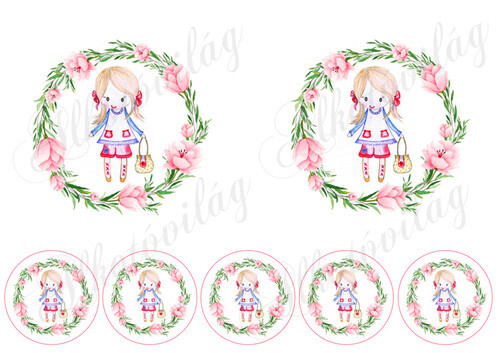 Rajzolt kislányok élénkebb színben 10,5 és 5,5 cm - Több mint 20 alapanyagon elérhető.