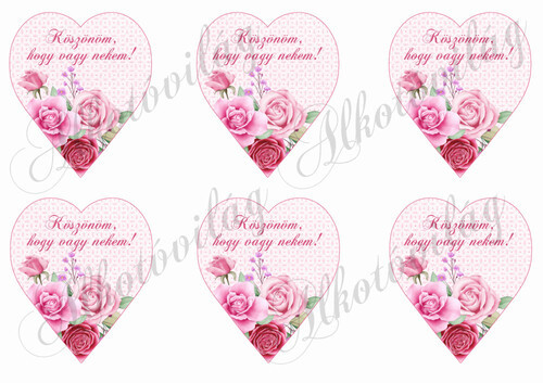 Rózsaszín árnyalatú szívek rózsákkal - 9 cm magas - KÖSZÖNÖM, HOGY VAGY NEKEM felirattal - Több mint 20 alapanyagon elérhető.