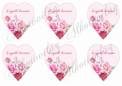 Rózsaszín árnyalatú szívek rózsákkal - 9 cm magas - LEGJOBB BARÁTNŐ felirattal - Több mint 20 alapanyagon elérhető.