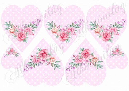 Rózsaszín pöttyös szív rózsával - Több mint 20 alapanyagon elérhető.