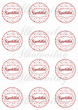 SZERETETTEL felirat aprócska szíves körökben KICSIBEN - Több mint 20 alapanyagon elérhető.