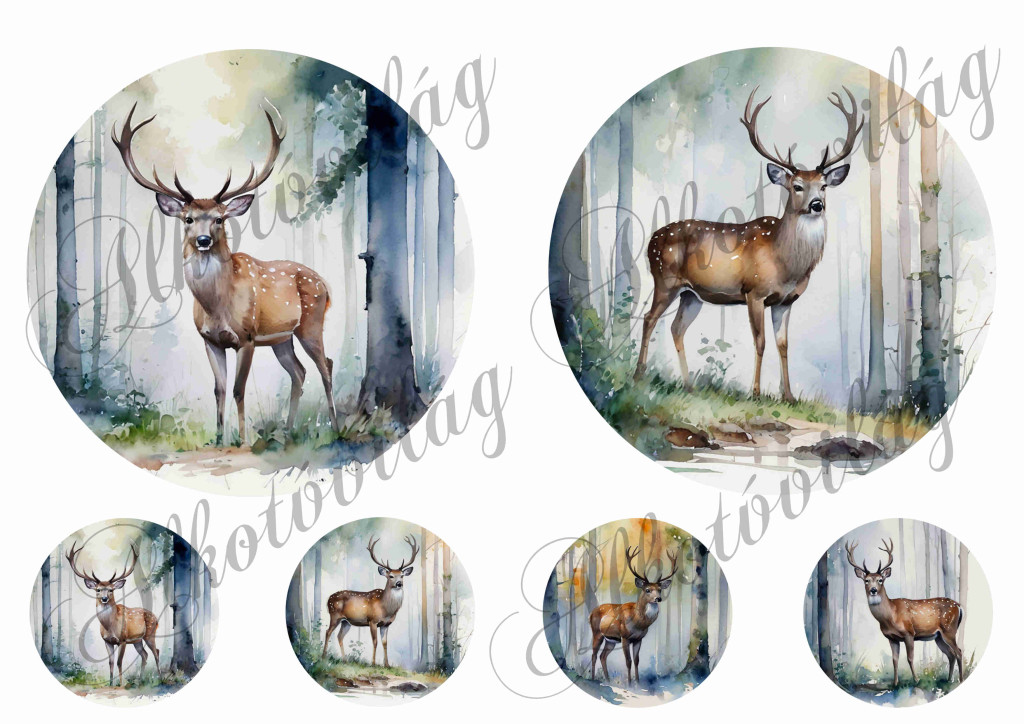 Szarvasok fák között körökben 13 és 5,5 cm átmérőjű - Több mint 20 alapanyagon elérhető.