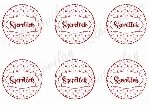 Szeretlek felirat aprócska szíves körökben - Több mint 20 alapanyagon elérhető.