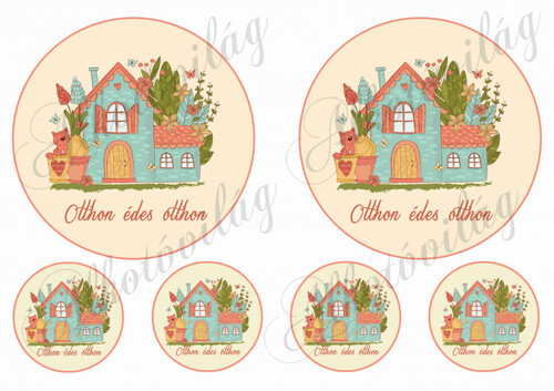 Színes házikó cicával - otthon édes otthon felirattal - Több mint 20 alapanyagon elérhető.