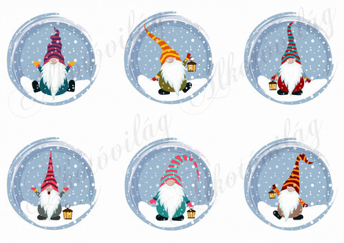 Színes manók hóeséses gömbökben - Több mint 20 alapanyagon elérhető.