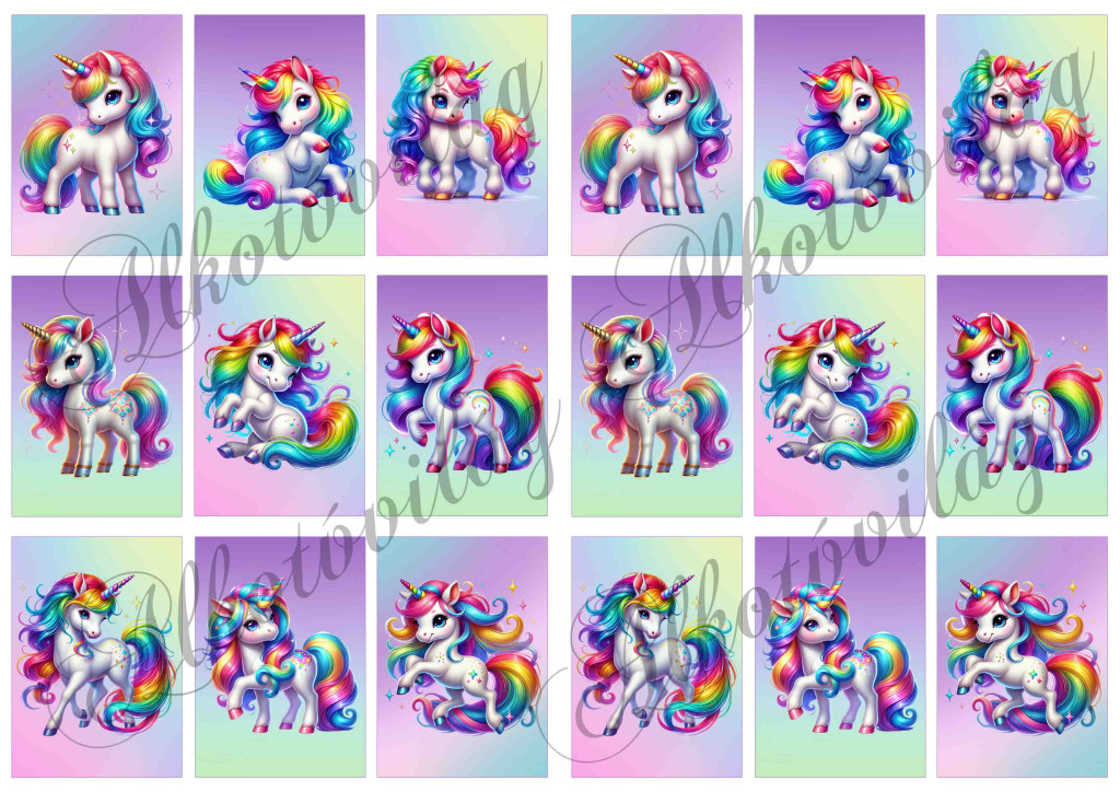 Színes unikornisok 4,5 x 6,5 cm - HŰTŐMÁGNES, AJÁNDÉKKÍSÉGŐ készítéshez