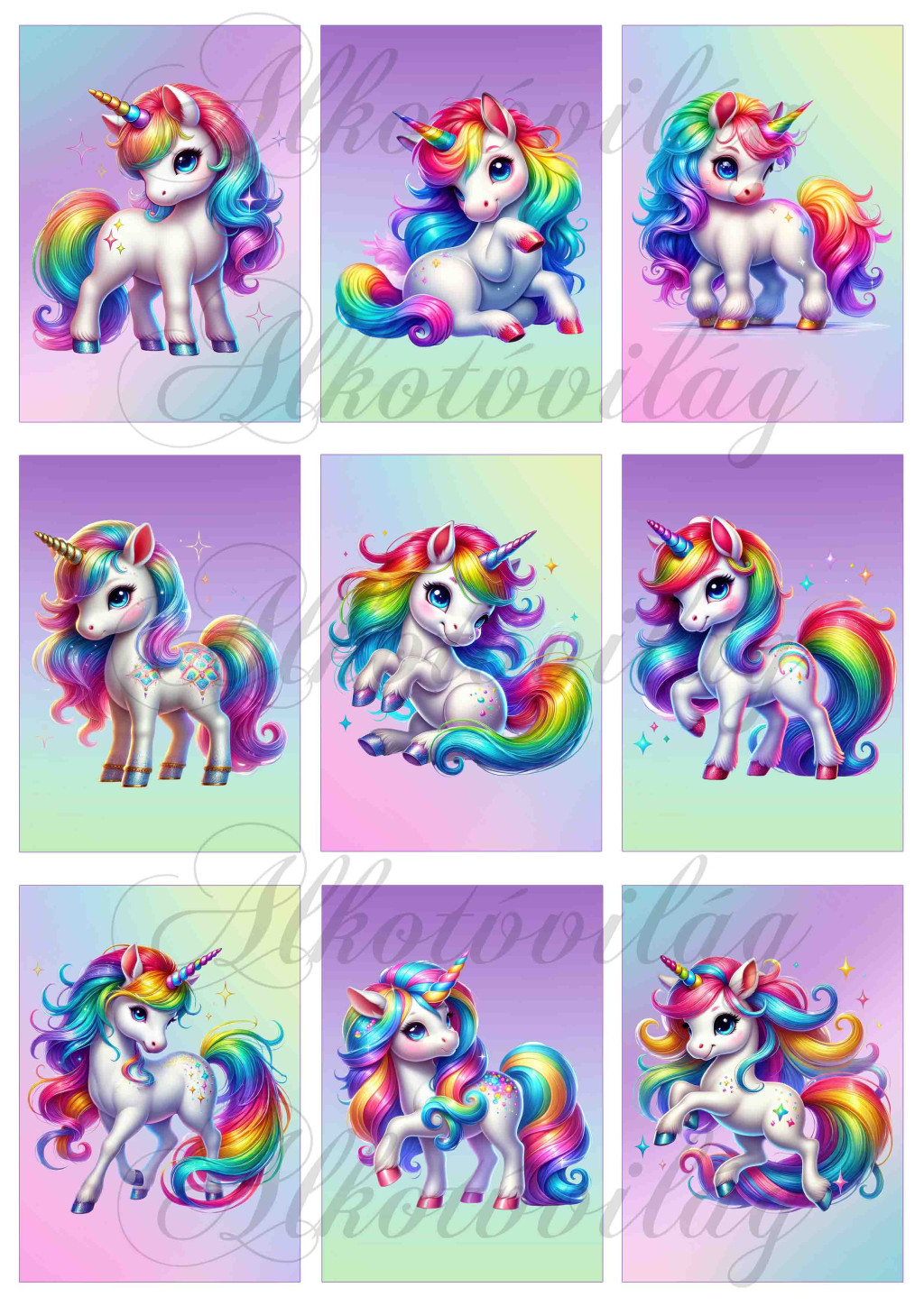 Színes unikornisok 9 x 6 cm - HŰTŐMÁGNES, AJÁNDÉKKÍSÉGŐ készítéshez