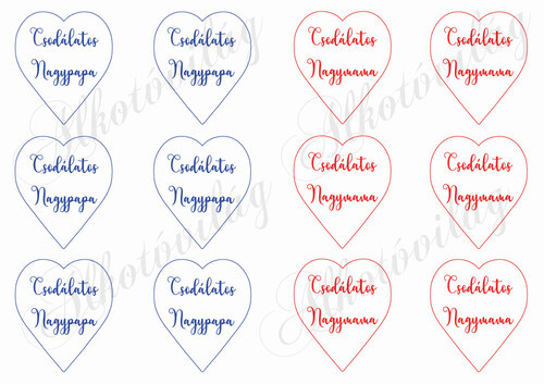 Szívek - 6 cm kék, piros kerettel, Csodálatos Nagypapa és Nagymama feliratokkal - Több mint 20 alapanyagon elérhető.