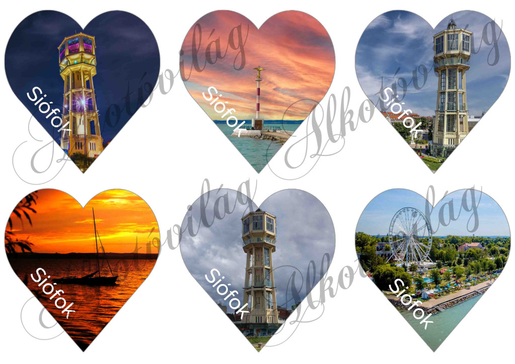Szívek SIÓFOK nevezetességeivel és felirattal - 9 cm magas