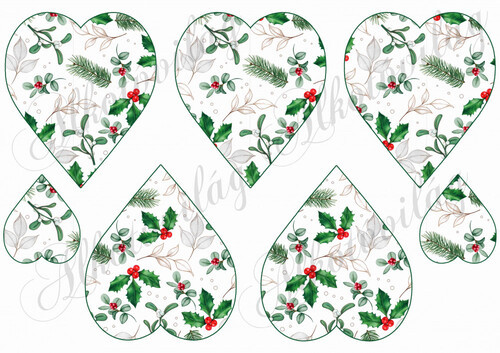 Szívek magyal levelekkel, piros bogyókkal, fenyőágakkal - Több mint 20 alapanyagon elérhető.