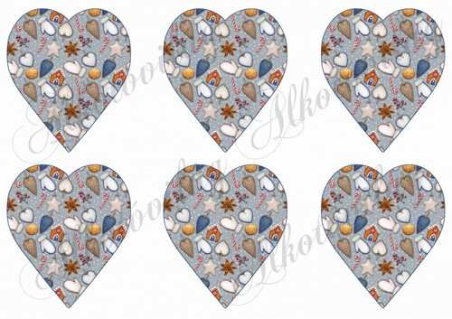 Szívek karácsonyi mintákkal kékes színekben - Több mint 20 alapanyagon elérhető.