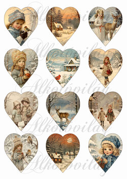 Szívek karácsonyi vintage mintákkal 6,5 cm magas - Több mint 20 alapanyagon elérhető.