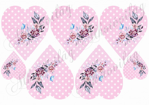 Szívek rózsaszín pöttyös alapon kézzel festett rózsával - Több mint 20 alapanyagon elérhető.