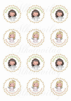 Szőke és barna angyalkák - ELSŐ KARÁCSONYOM felirattal KICSIBEN - Több mint 20 alapanyagon elérhető.
