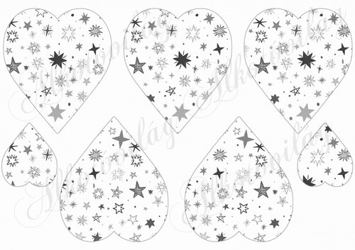 Szürkés árnyalatú csillagos szívek - Több mint 20 alapanyagon elérhető.