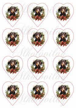 Tacsik karácsonyi koszorúban 6,5 cm-es szívekben - Több mint 20 alapanyagon elérhető.