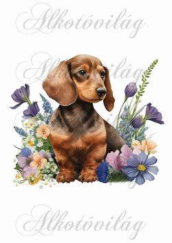 Tacskó kutyus virágokkal - Több mint 20 alapanyagon elérhető.