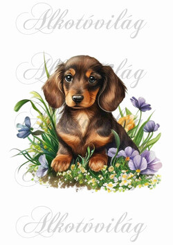 Tacskó kutyus virágokkal 1 - Több mint 20 alapanyagon elérhető.