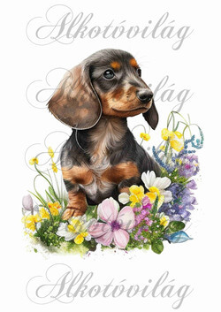 Tacskó kutyus virágokkal - 20 x 17 cm - Több mint 20 alapanyagon elérhető.