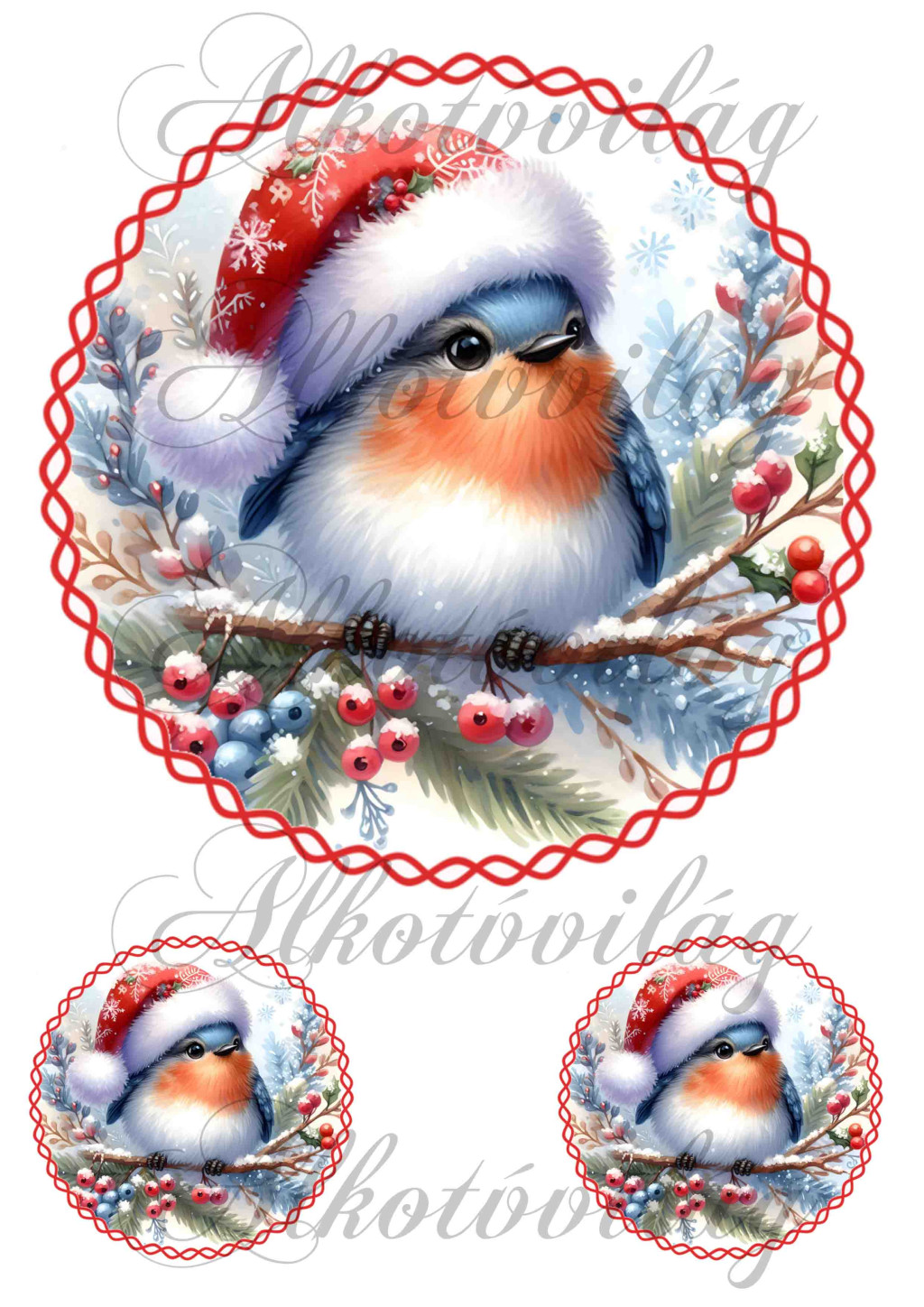 Téli kismadár hópelyhes sapkában 18,5 cm körben