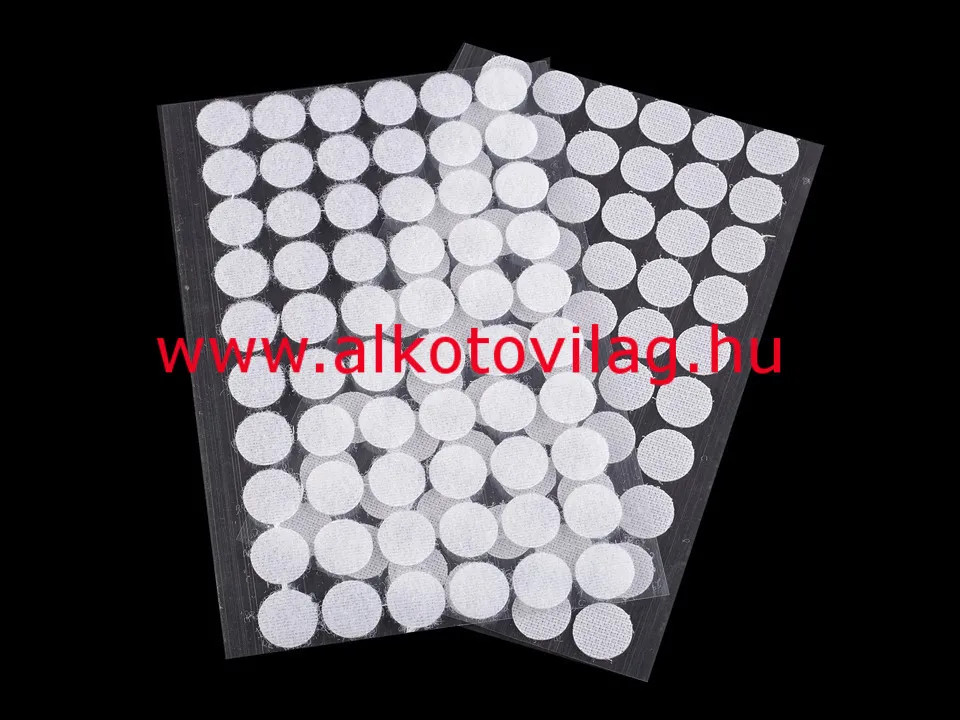 15 mm átmérőjű, 2,8 vastag, ÖNTAPADÓS tépőzár pöttyök. Egy ív 60 párt tartalmaz.