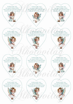 Tüneményes angyalkák türkiz ruhában felirattal - 6,5 cm magas - Több mint 20 alapanyagon elérhető.