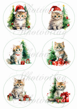 Tüneményes kiscicák mikulássapkában 9 cm - Több mint 20 alapanyagon elérhető.
