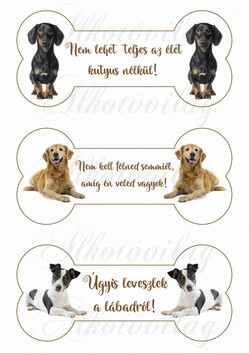 Tüneményes kutyusok csontokban feliratokkal - Tacskó, gondlen retriever, jakc russel - Több mint 20 alapanyagon elérhető.
