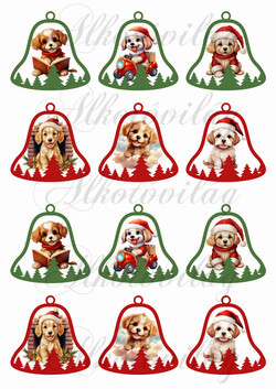 Tüneményes kutyusok harangokban - 6 cm magas - Több mint 20 alapanyagon elérhető.
