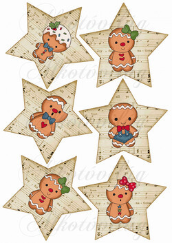 Tüneményes mézeskalács babák kottás csillagokon - Több mint 20 alapanyagon elérhető.