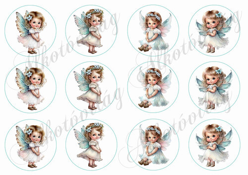 Tüneményes türkiz ruhás angyalkák 6 cm körökben