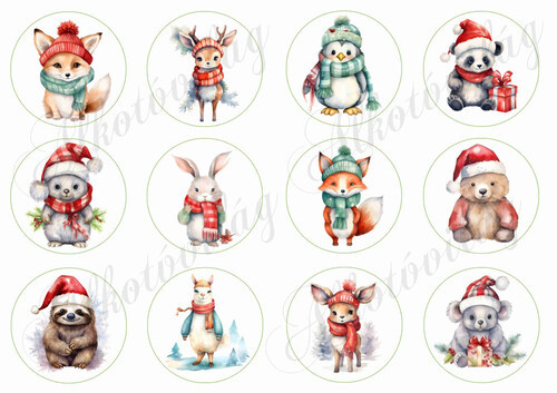 Übercuki kézzel festett téli állatkák 6 cm-es körökben - Több mint 20 alapanyagon elérhető.
