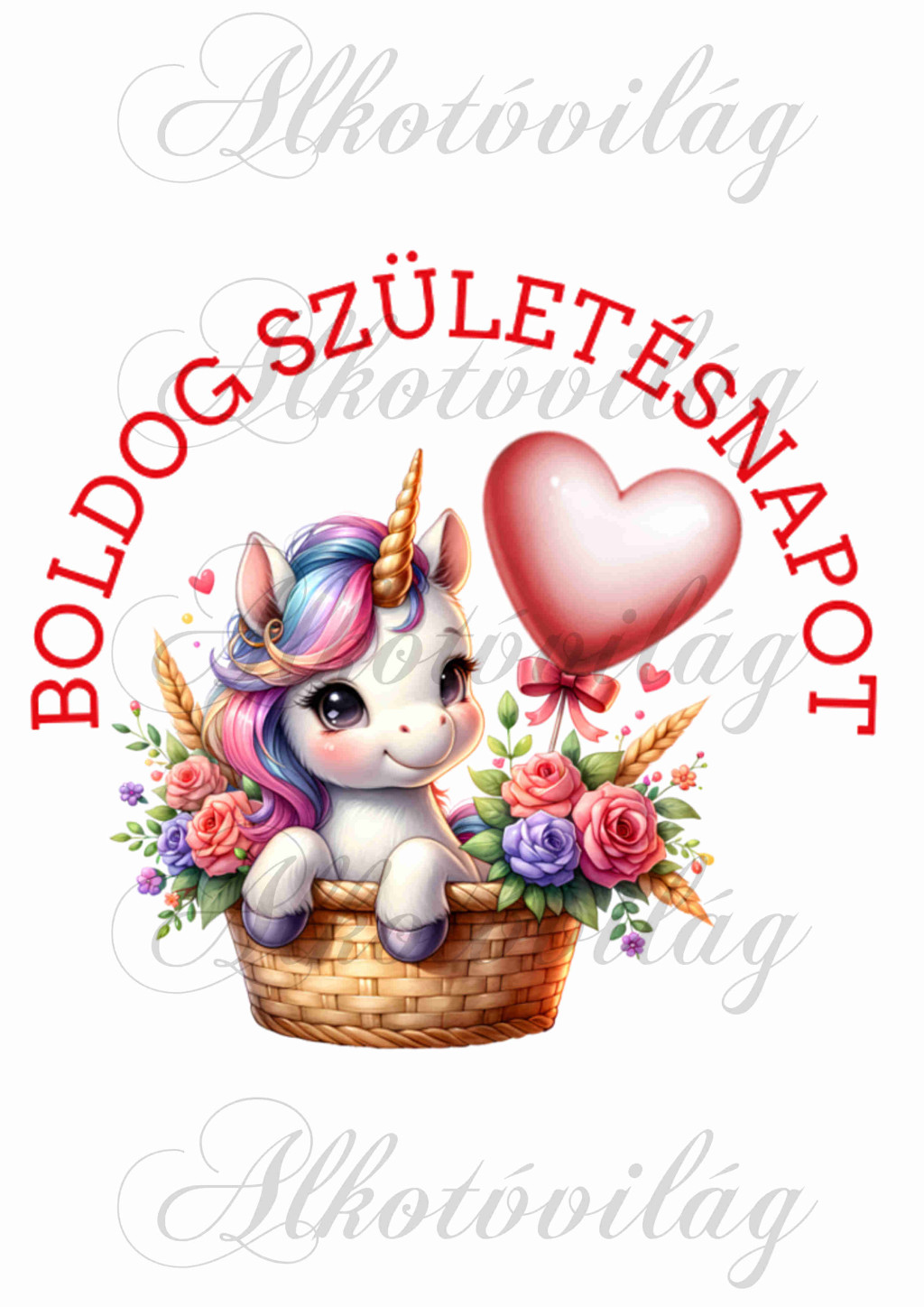 Unikornis BOLDOG SZÜLETÉSNAPOT felirattal